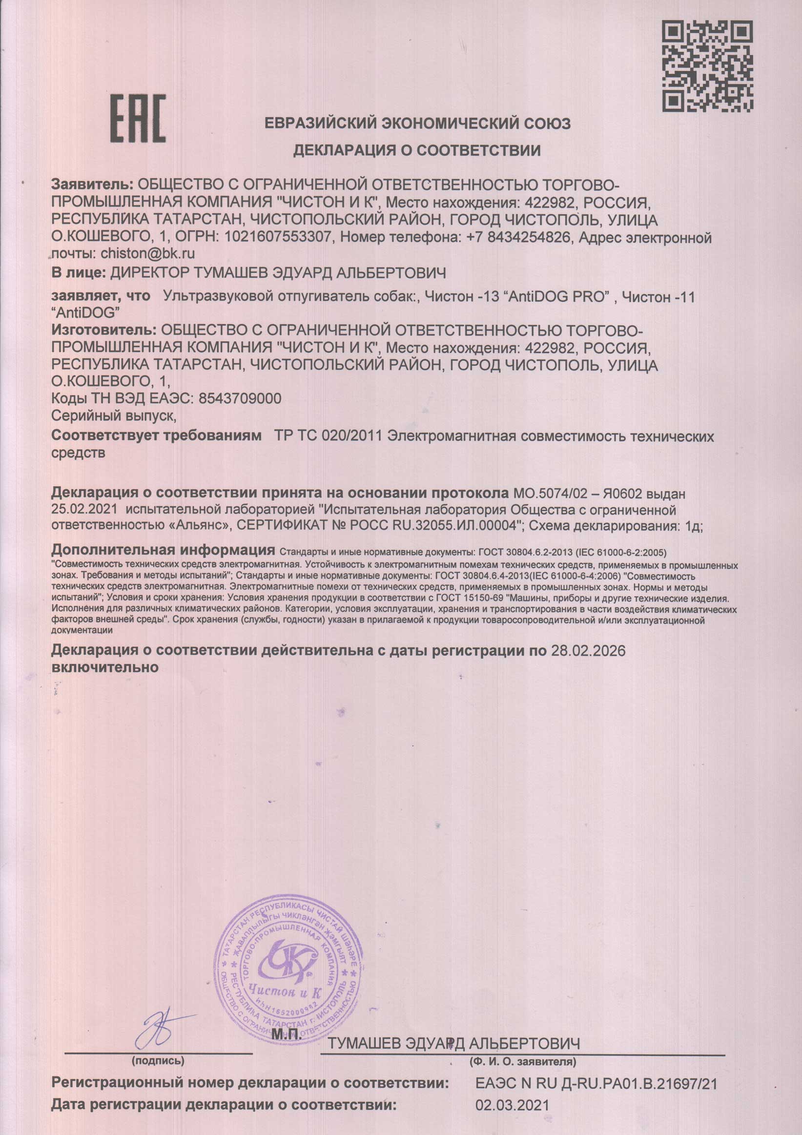 Купить ультразвуковой отпугиватель собак «Чистон-11 АнтиДОГ» по низкой цене в Сысерти очень просто: для этого достаточно оформить заказ в нашем онлайн-магазине.